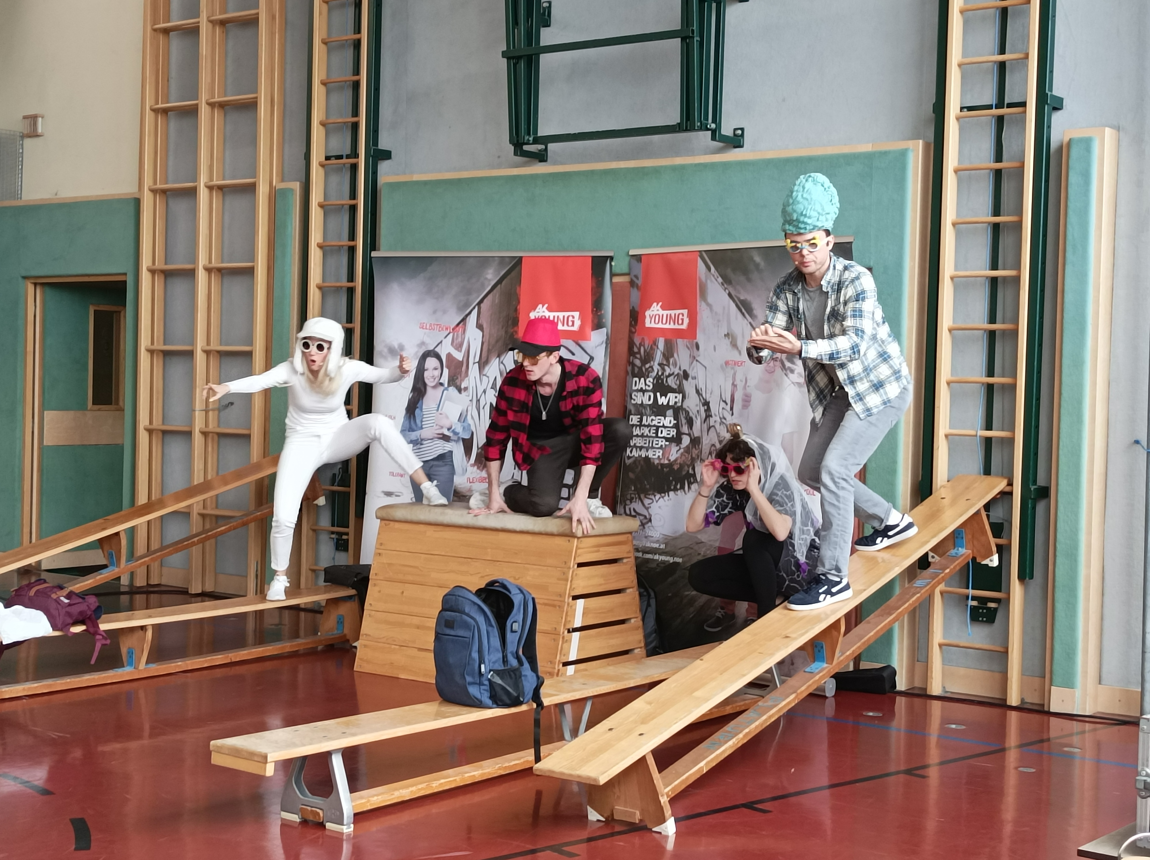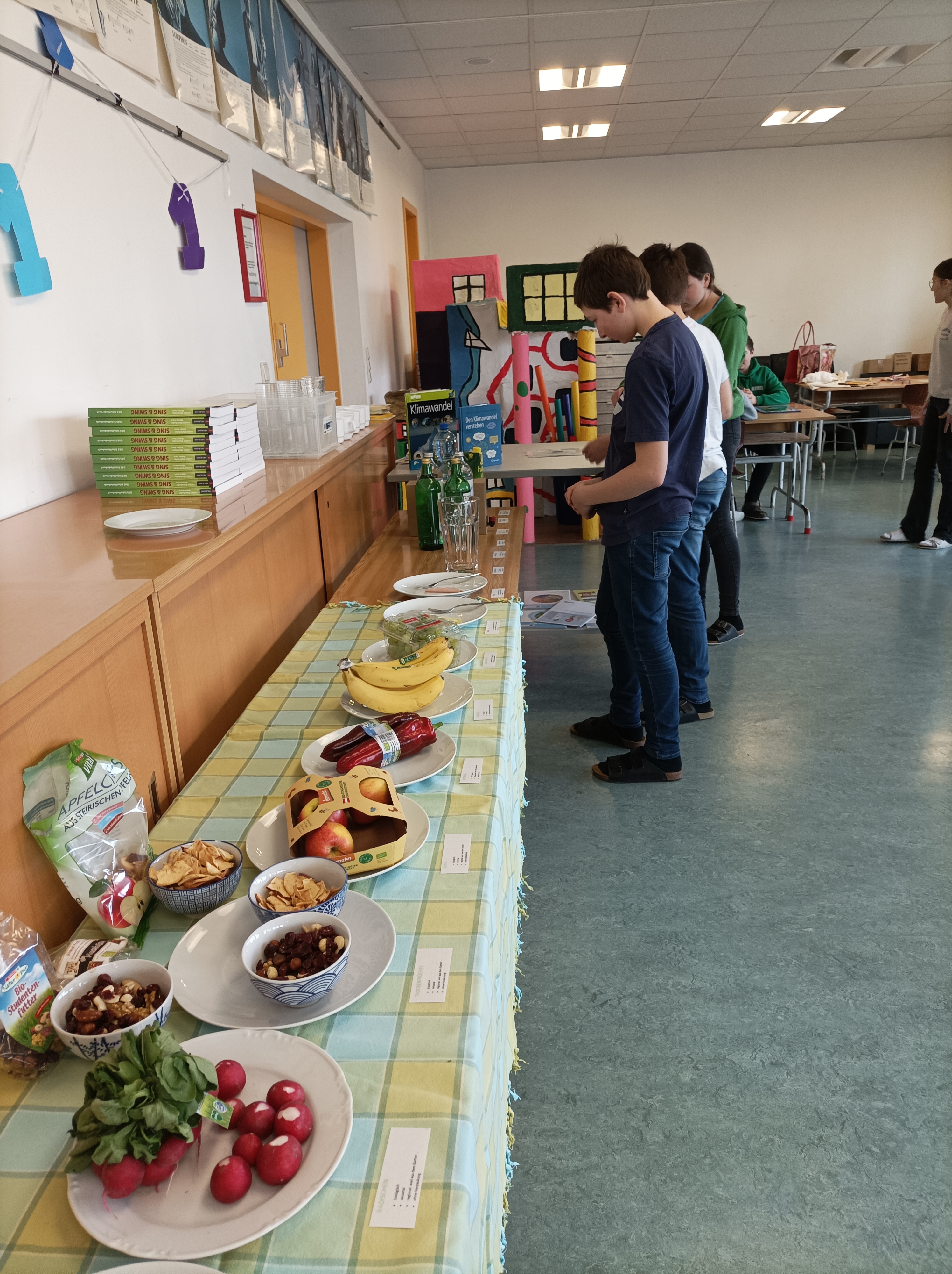 Die Programmpunkte waren unter anderem: Workshops zum Thema richtige Abfallentsorgung mit Elke Allram vom Gemeindeverband für Abfallwirtschaft in Waidhofen, eine Klimajause mit Lisa Schawerda und Sonja Appel, eine regionale Jause in der Schulküche unter dem Motto „selbst gemacht und regional“, es wurden Kurzfilme zum Thema angeschaut und diskutiert und Plakate erarbeitet und alle Klassen sahen das Theaterstück „All Eyes on Us“ mit dem AK Jugendtheater zum Thema Umweltschutz und Nachhaltigkeit. Dabei wurden hochaktuelle Fragen behandelt: Was ist Klimawandel? Welche Rolle spielt Plastik bei der Umweltverschmutzung? Was bedeutet Nachhaltigkeit? Welchen Beitrag kann ich selbst leisten? Die Schülerinnen und Schüler wurden interaktiv in das Stück miteinbezogen und zum Mitmachen und Mitdenken angeregt.