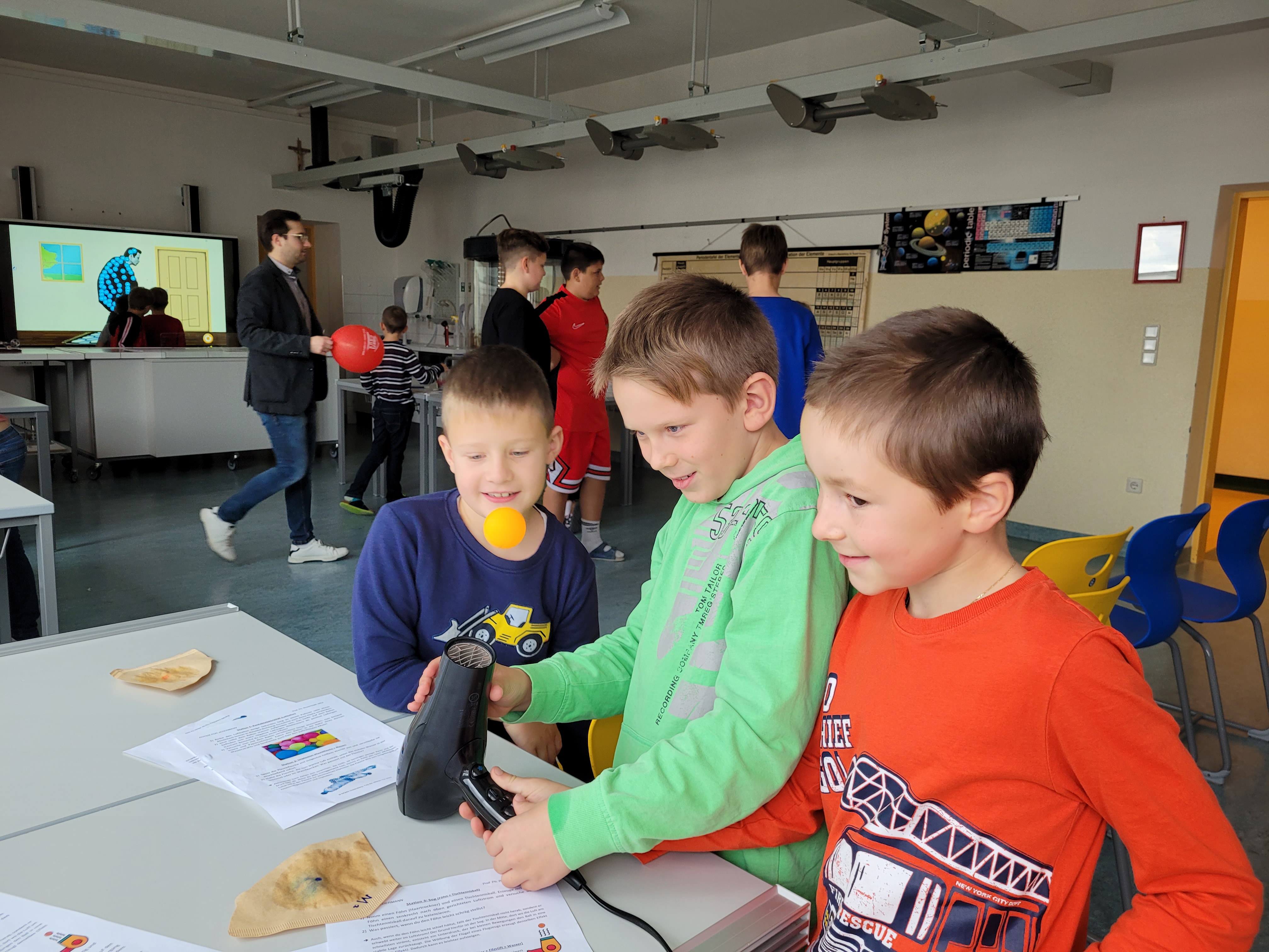 Nachdem Frau Direktorin Anita Fröhlich die Kinder herzlich begrüßte und erste Einblicke in das schulische Angebot anhand des Schulvideos gab, wurden die SchülerInnen in Gruppen eingeteilt. Bei den einzelnen Stationen konnten die Kinder aktiv am Unterricht teilnehmen und wurden von Lehrkräften und Schülerinnen und Schülern der Mittelschule betreut. Neben Sport und Spaß im Turnsaal bei einem „Ninja Warrior Parcours“ konnten die Kinder Experimente im Physiksaal ausprobieren.