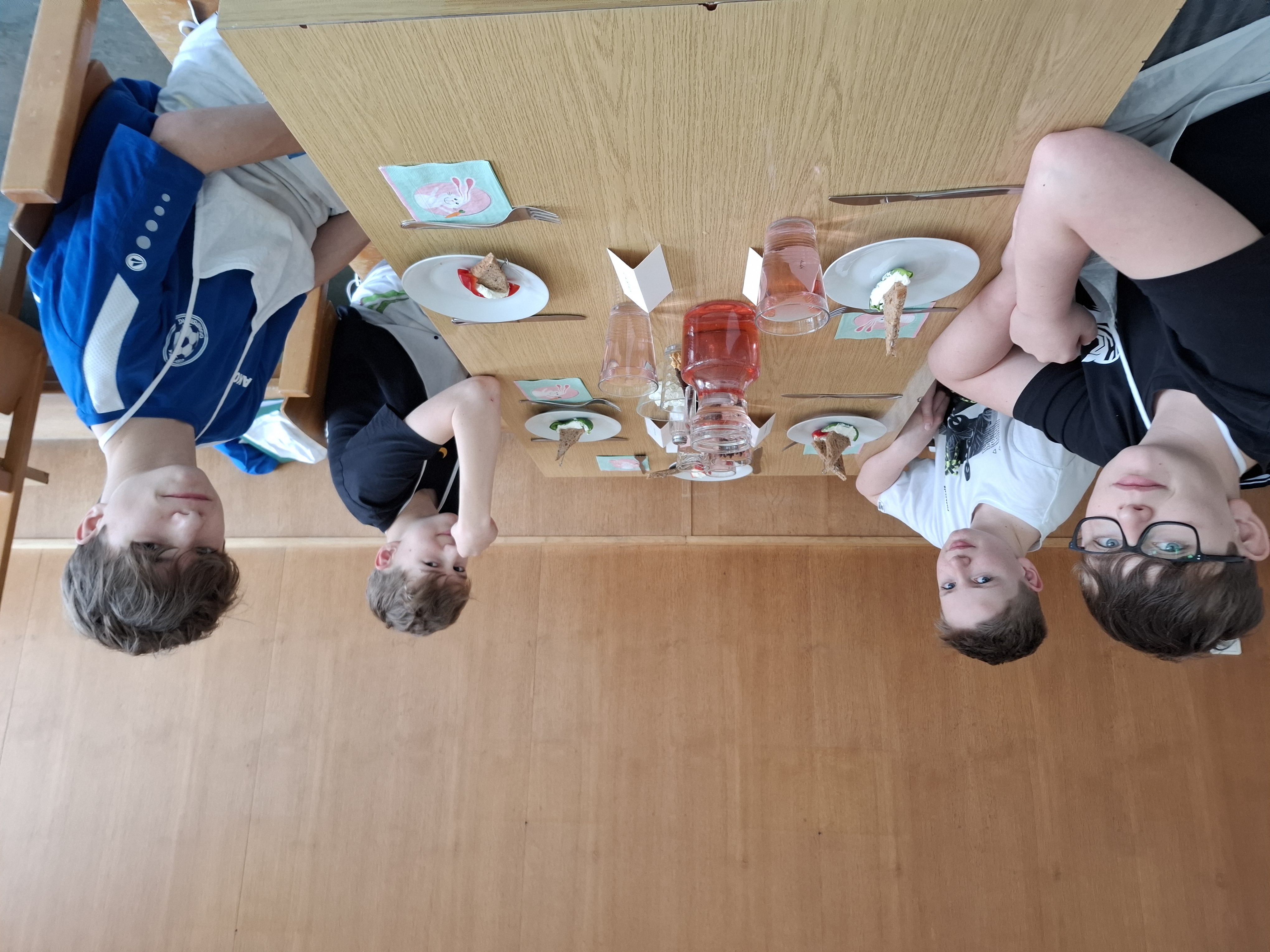 Die 4. Klasse startete die Woche mit einem selbst organisierten Frühstück. Das Angebot reichte von Butterbrot bis zu Joghurt, Müsli und Obst.