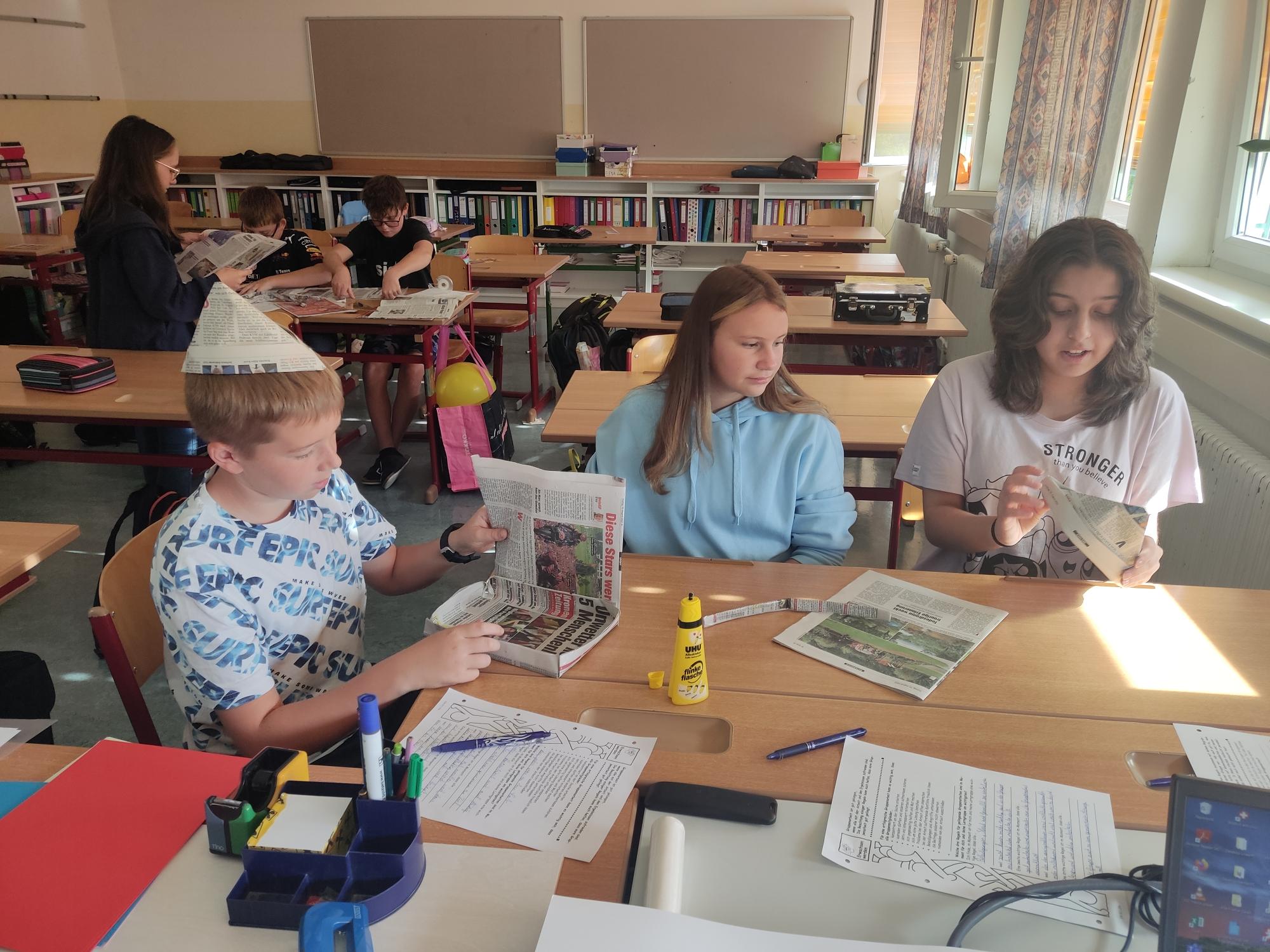 Danach erarbeiteten die Schüler die Vor- und Nachteile der Gruppenarbeit. Anschließend folgte der praktische Teil. Fünf Gruppen erhielten die Aufgabe, nur mit Zeitungspapier und Tixo eine möglichst kreative Tasche herzustellen. Die Ergebnisse zeigten, welch kreative Lösungen durch Teamarbeit möglich sind.