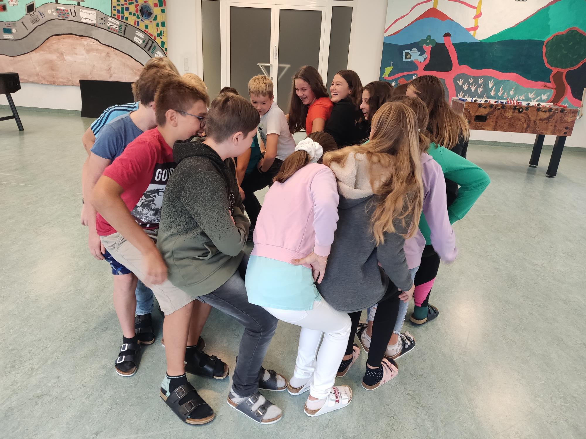 Durch Kennenlernspiele konnten sich die Schülerinnen und Schüler der 1. Klasse miteinander vertraut machen. In Gruppen durften sie im Anschluss das Schulgebäude erkunden.