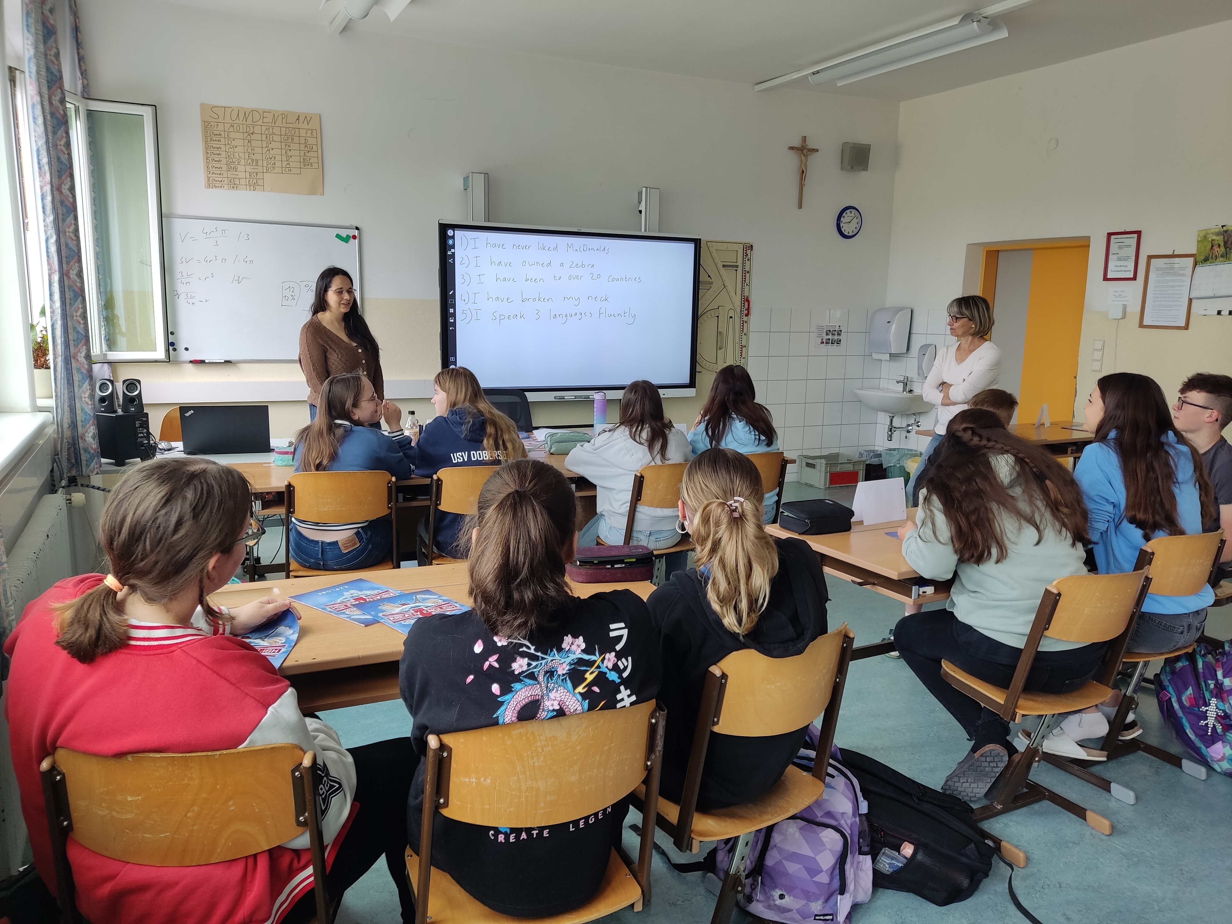 Die Schüler und Schülerinnen konnten spielerisch ihre Englischsprachkenntnisse trainieren und verbessern, was ihnen großen Spaß bereitete. Native Speaker aus England, Trinidad und Südafrika brachten Spracherfahrung auf Englisch direkt ins Klassenzimmer.