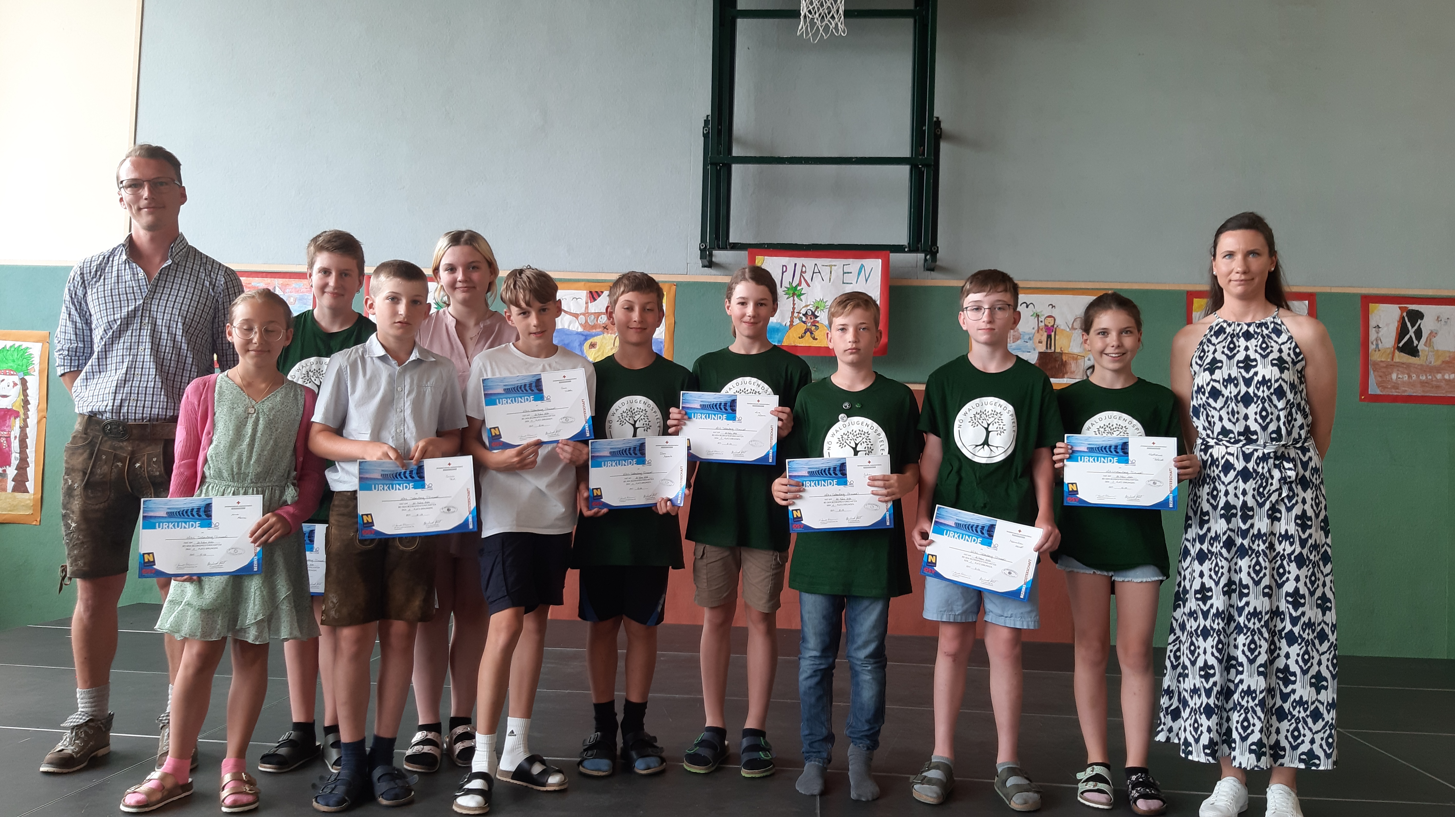 Mit viel Wissen um die Natur errangen die Schülerinnen und Schüler der 2. Klasse den 1. Platz beim Landesbewerb der Waldjugendspiele. Biologielehrer Otmar Strondl übergab ihnen stolz die Urkunden und Preise für ihre tolle Leistung.