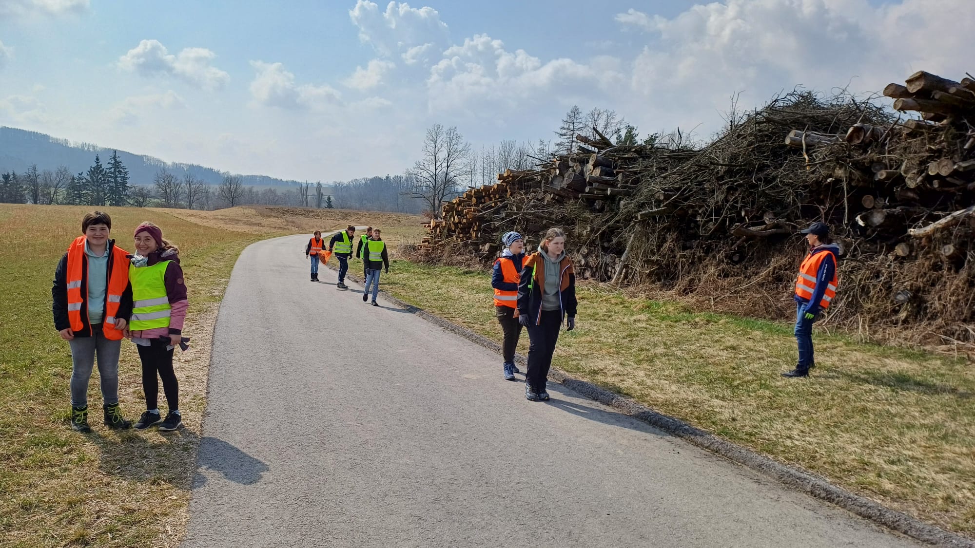 Wind oder Unbelehrbare sorgen immer wieder für Verschmutzung, den die tatkräftigen SchülerInnen mit ihren Lehrern Otmar Strondl und Helene Handl beseitigten.